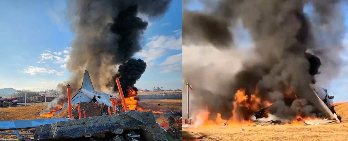 जेजू एयर की उड़ान संख्या 2216 विमान बैंकॉक से वापस दक्षिण कोरिया आ रहा था. विमान में आग लगने के बाद आसमान धुएं के गुबार से भर गया. सोशल मीडिया पर हादसे का वीडियो शेयर किया गया है.