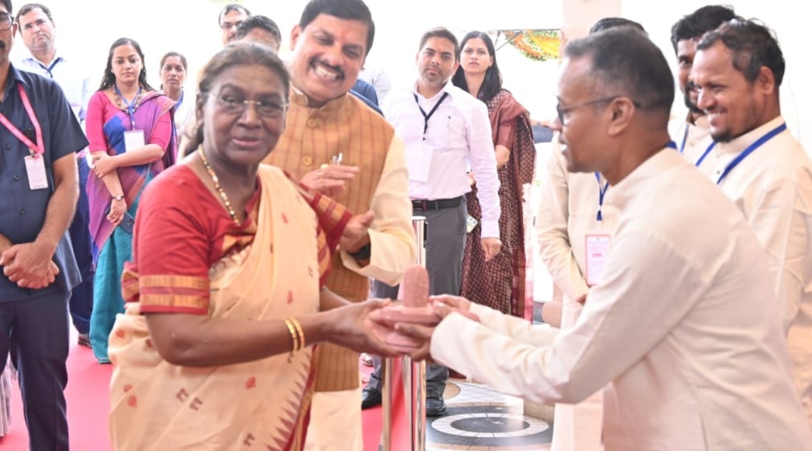 उन्होंने शिल्पकारों से कहा कि पढ़ाई सभी लोग करते हैं, लेकिन कला सबके पास नहीं होती है. आपके द्वारा किए जा रहे कार्य बहुत सराहनीय है. इस दौरान राष्ट्रपति मुर्मू ने शिल्पकारों को शॉल, श्रीफल भेंट किये. शिल्पकारों द्वारा राष्ट्रपति को पाषाण का शिवलिंग भेंट किया. वर्तमान में शिल्पकार महाकाल लोक में शिव, कमल, सप्त ऋषियों इत्यादि की मूर्तियां बना रहे हैं.
