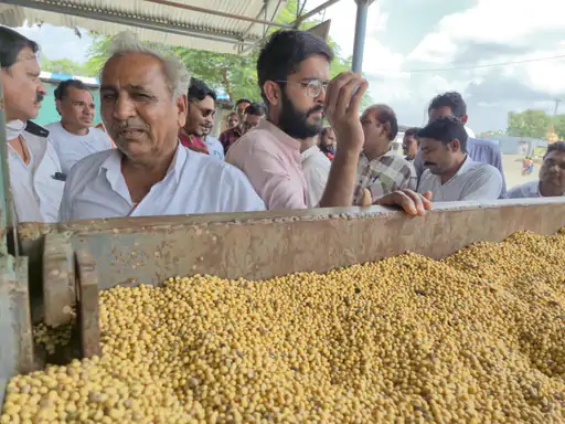 देवास: खातेगांव मंडी में नया सोयाबीन 4351 रुपए प्रति क्विंटल बिका, अधिक बारिश से फसल पर काले धब्बे बने