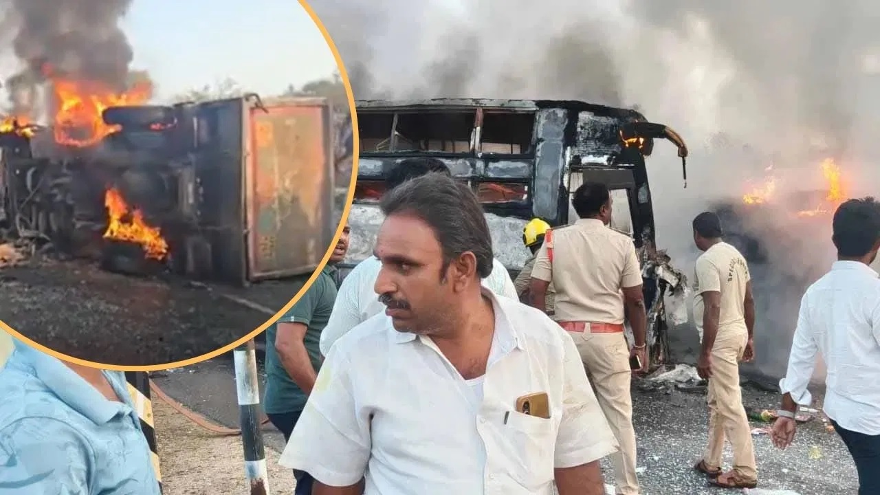 हैदराबाद से पामुर जा रही एक निजी ट्रैवल बस की टक्कर चिमाकुर्थी से बजरी ले जा रहे एक टिपर ट्रक से आमने-सामने हो गई. टक्कर के कारण दोनों वाहनों में आग लग गई और वे पूरी तरह जलकर खाक हो गए.