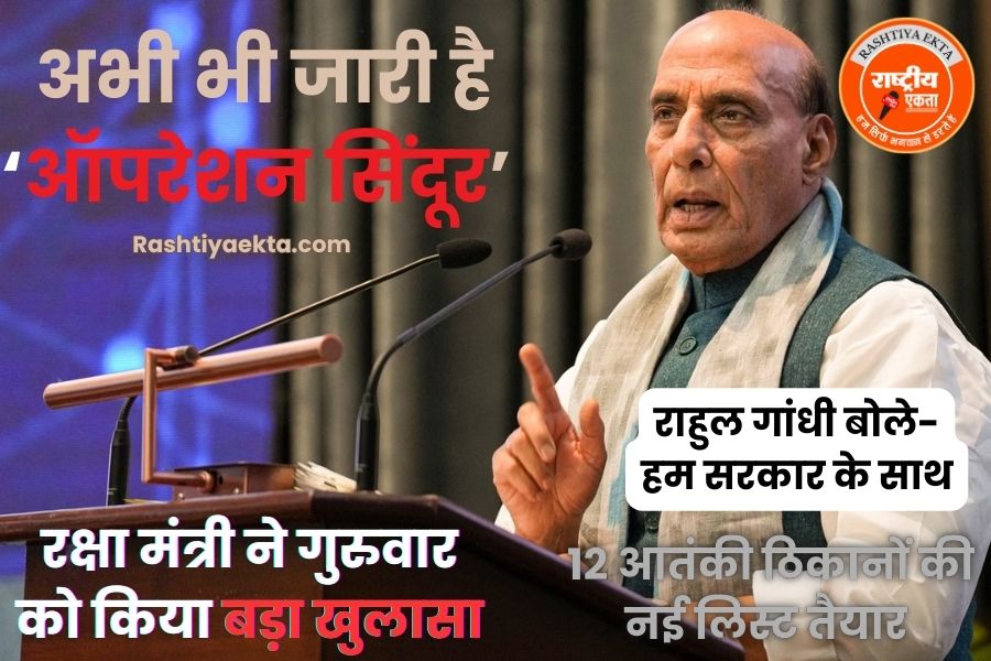ऑपरेशन सिंदूर अभी जारी है, रक्षा मंत्री ने दी बड़ी जानकारी, बताया एयरस्ट्राइक में कितने आतंकी हुए ढेर, राहुल गांधी बोले- हम सरकार के साथ